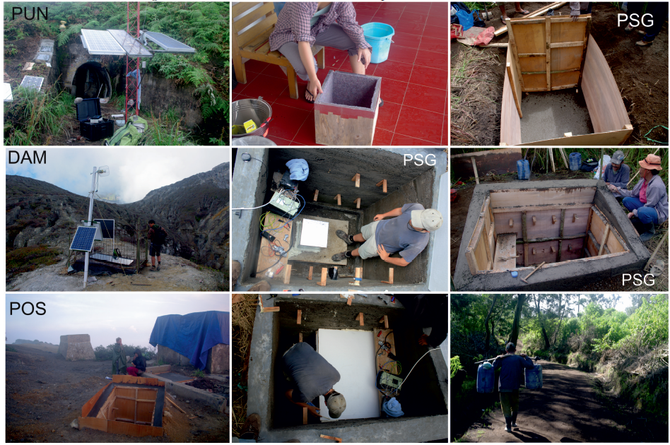 Figure 2: Installation of the different broadband seismic stations on the Kawah Ijen volcano, Java Island, Indonesia.