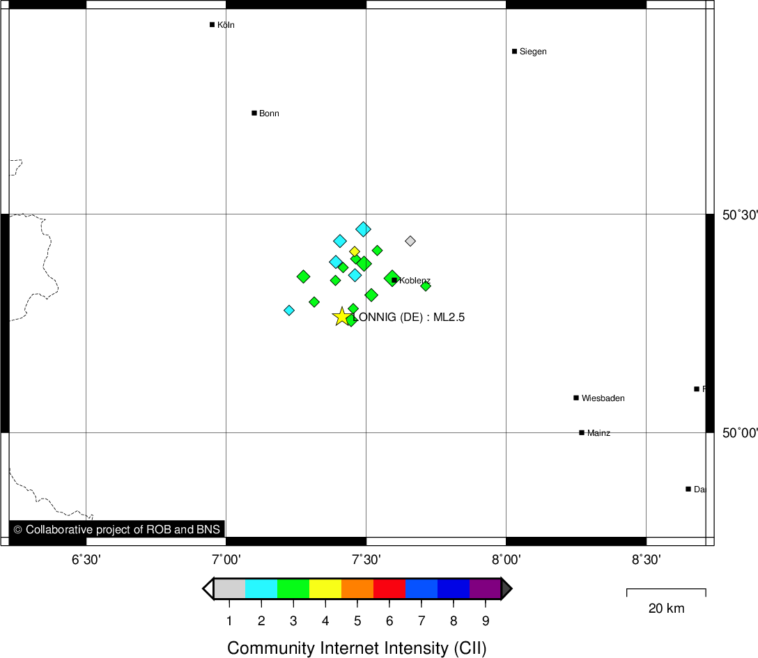 | Epicentral coordinates | 50.304° N, 7.409° E Uncertainty ± 0.8 km |