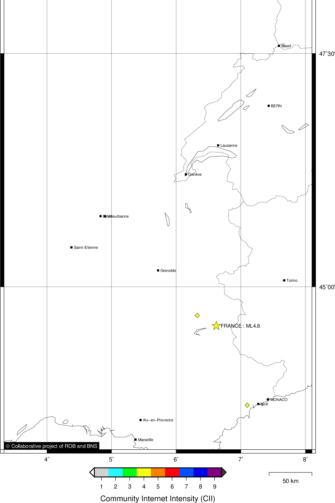 | Epicentral coordinates | 44.570° N, 6.620° E Uncertainty ± 3.9 km |