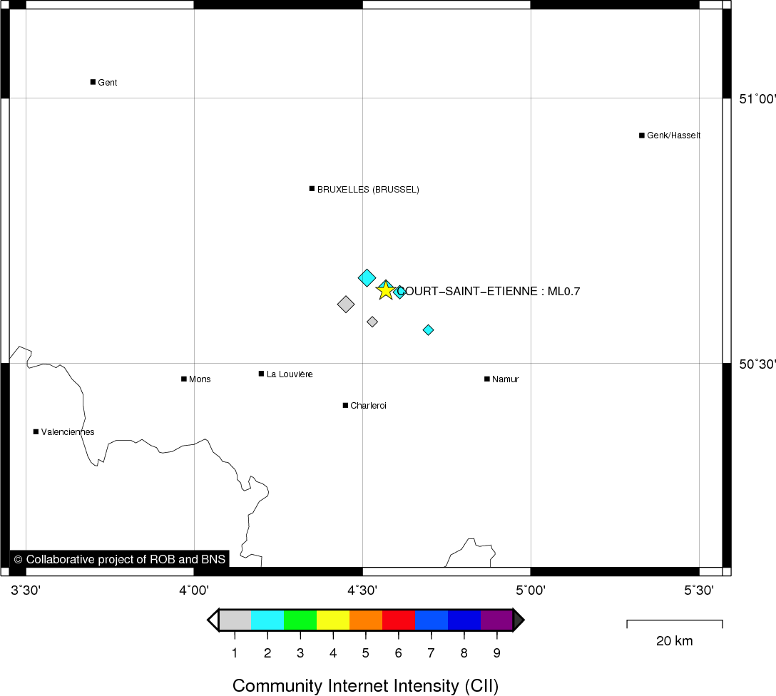| Epicentral coordinates | 50.638° N, 4.571° E Uncertainty ± 0.9 km |