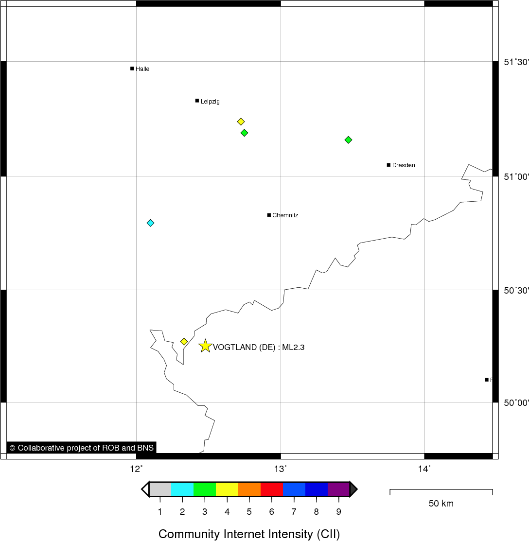 | Epicentral coordinates | 50.250° N, 12.480° E Uncertainty ± 10.0 km |