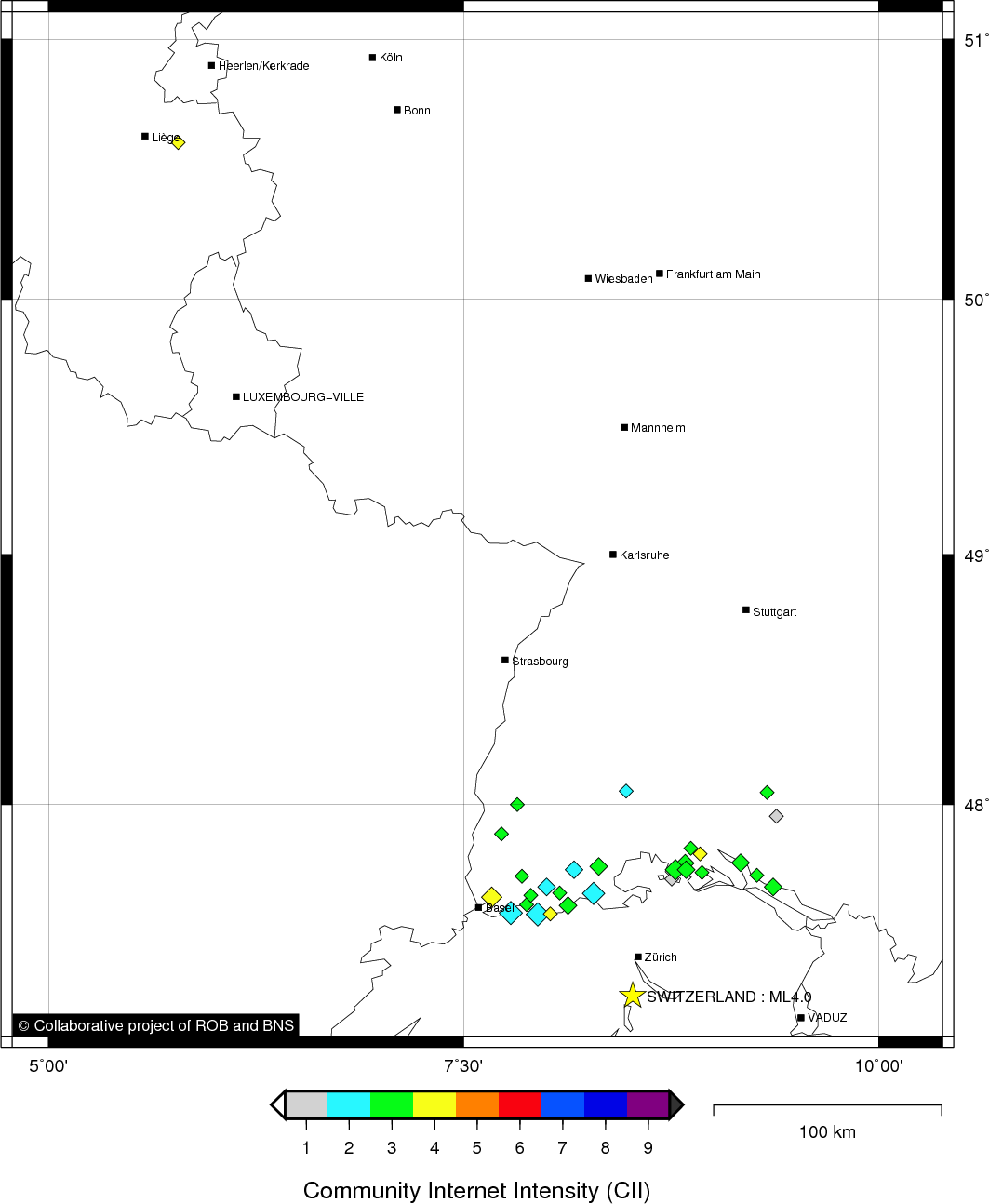 | Epicentral coordinates | 47.220° N, 8.520° E Uncertainty ± 10.0 km |