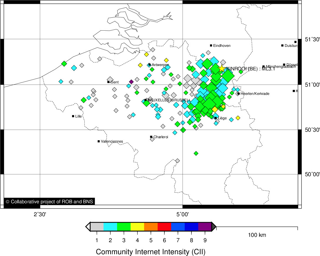 | Epicentral coordinates | 51.175° N, 5.687° E Uncertainty ± 0.6 km |