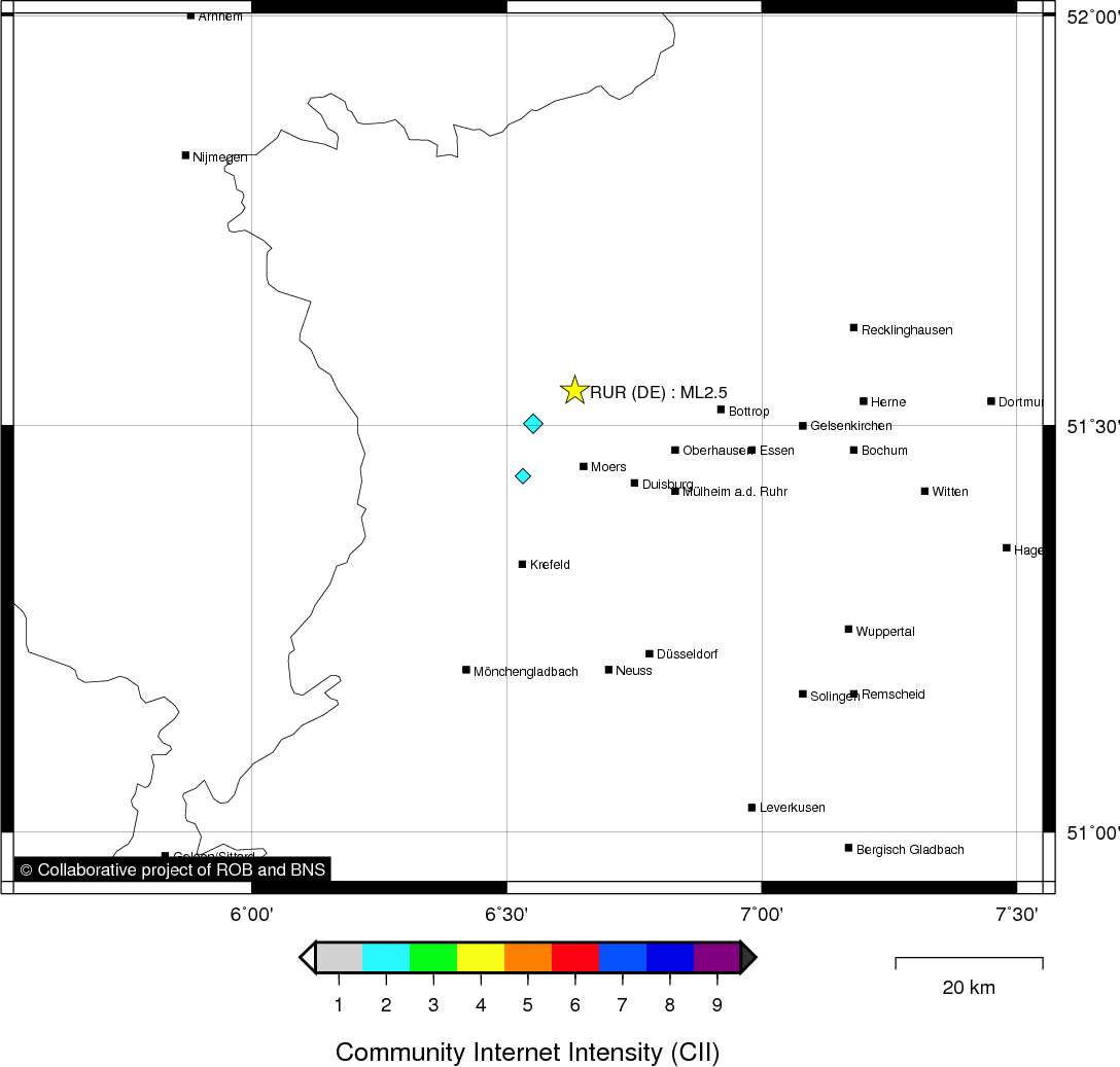 | Epicentral coordinates | 51.543° N, 6.634° E Uncertainty ± 13.1 km |