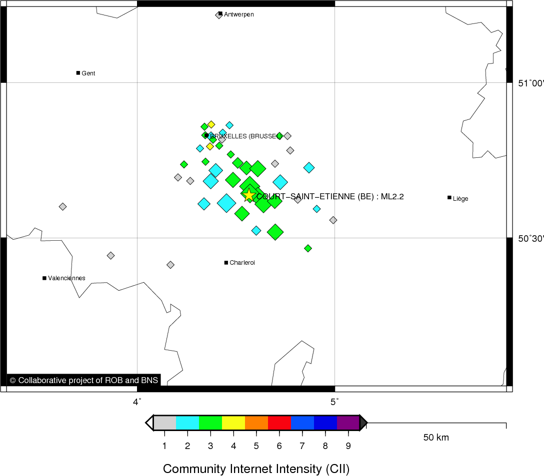 | Epicentral coordinates | 50.638° N, 4.565° E Uncertainty ± 0.8 km |