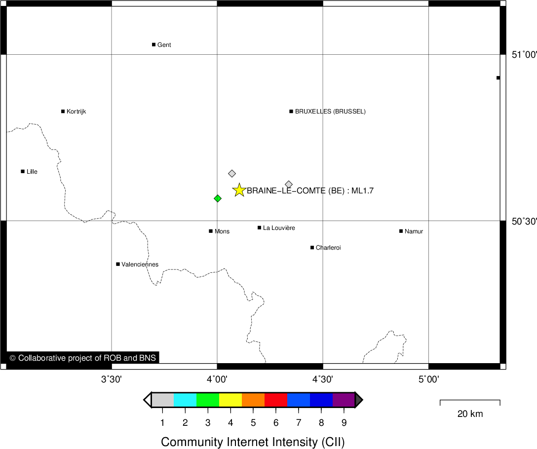 | Epicentral coordinates | 50.592° N, 4.105° E Uncertainty ± 1.7 km |
