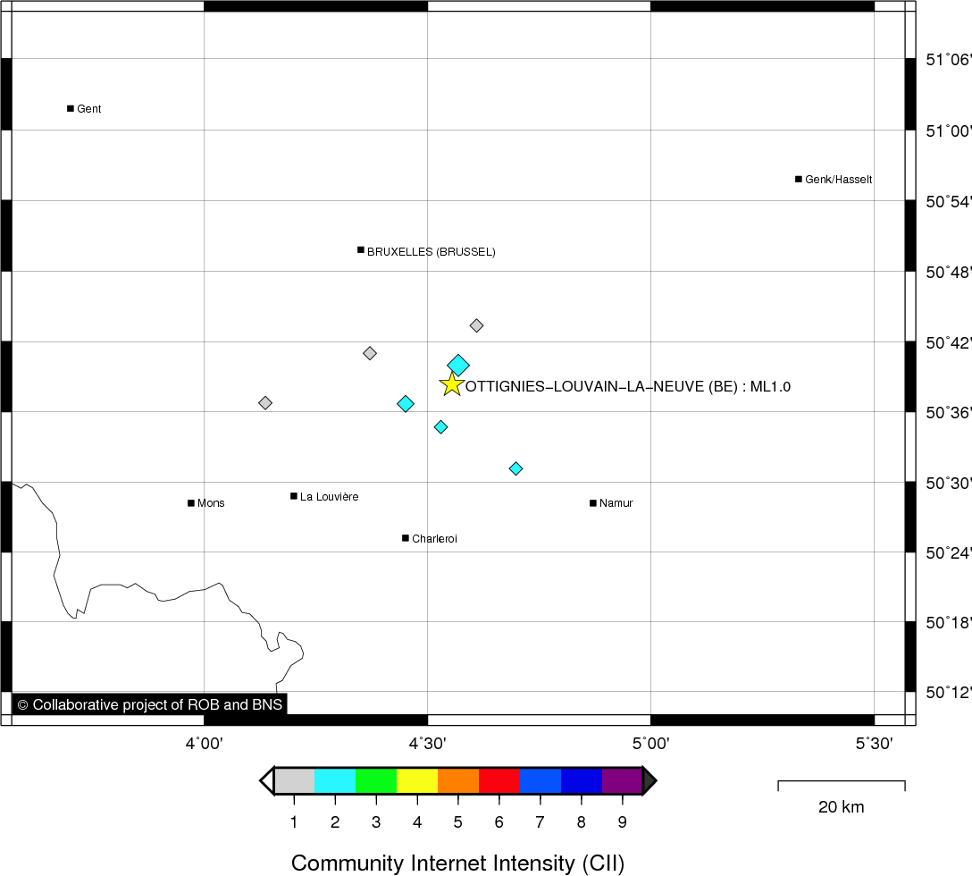 | Epicentral coordinates | 50.639° N, 4.555° E Uncertainty ± 0.8 km |