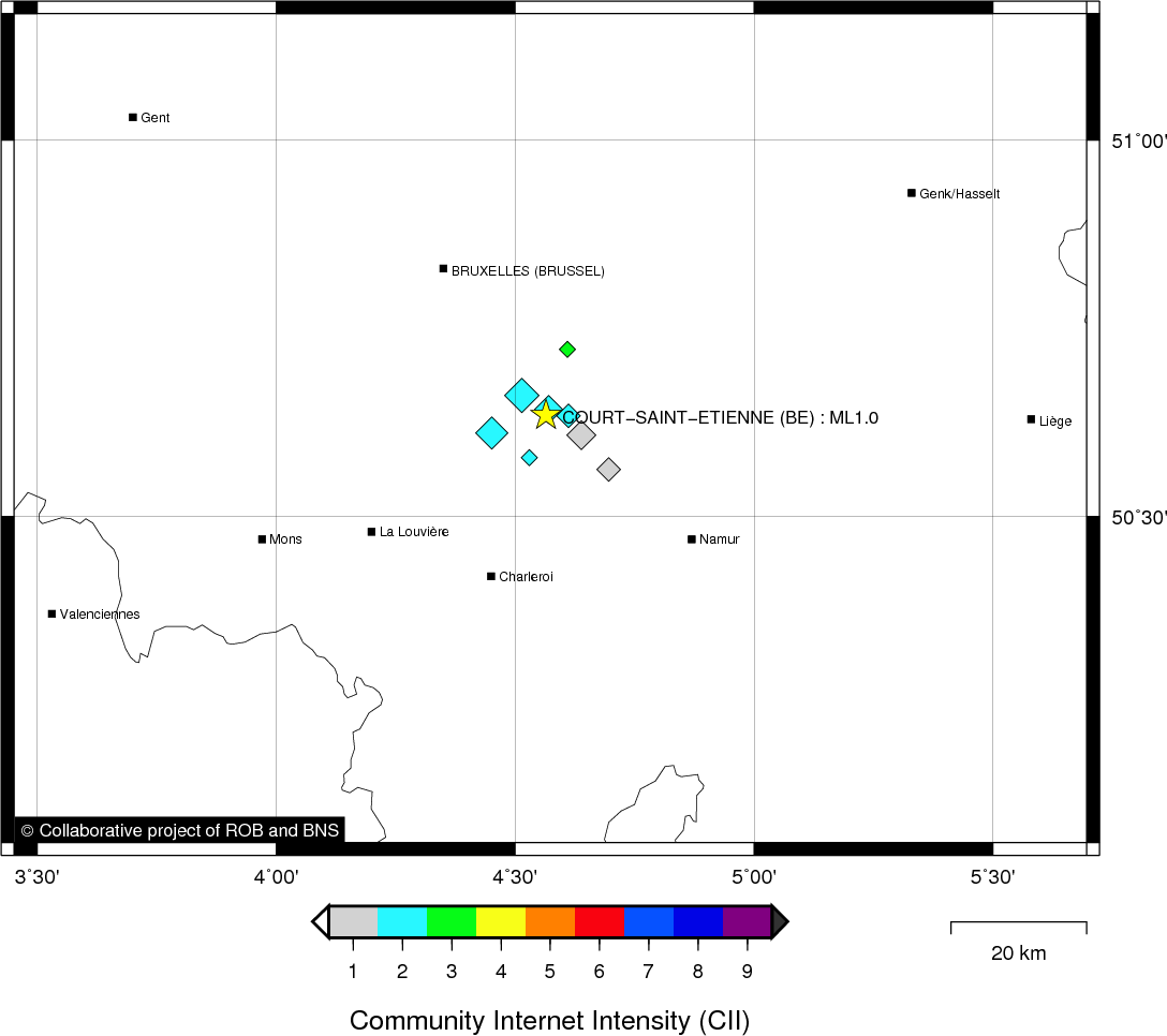 | Epicentral coordinates | 50.635° N, 4.565° E Uncertainty ± 0.6 km |