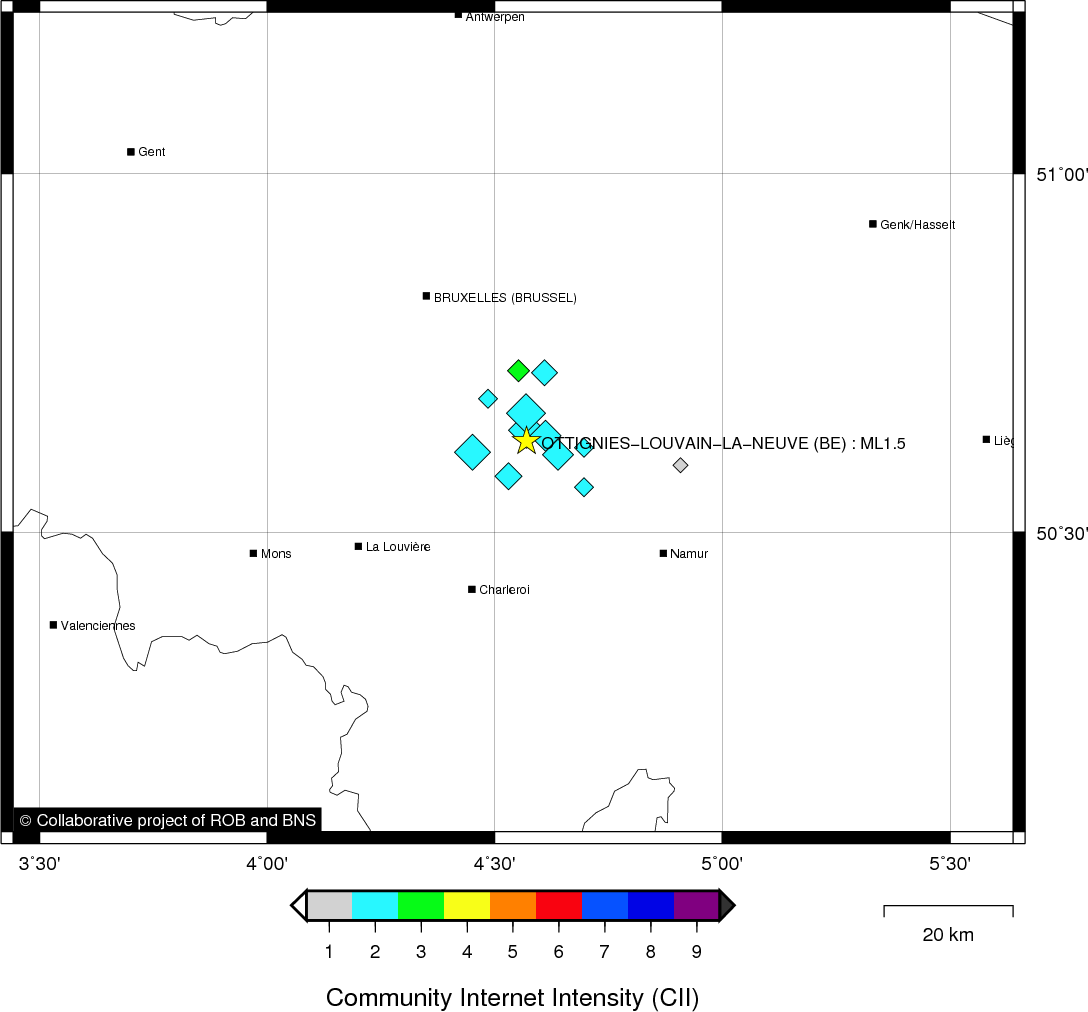 | Epicentral coordinates | 50.628° N, 4.570° E Uncertainty ± 0.9 km |