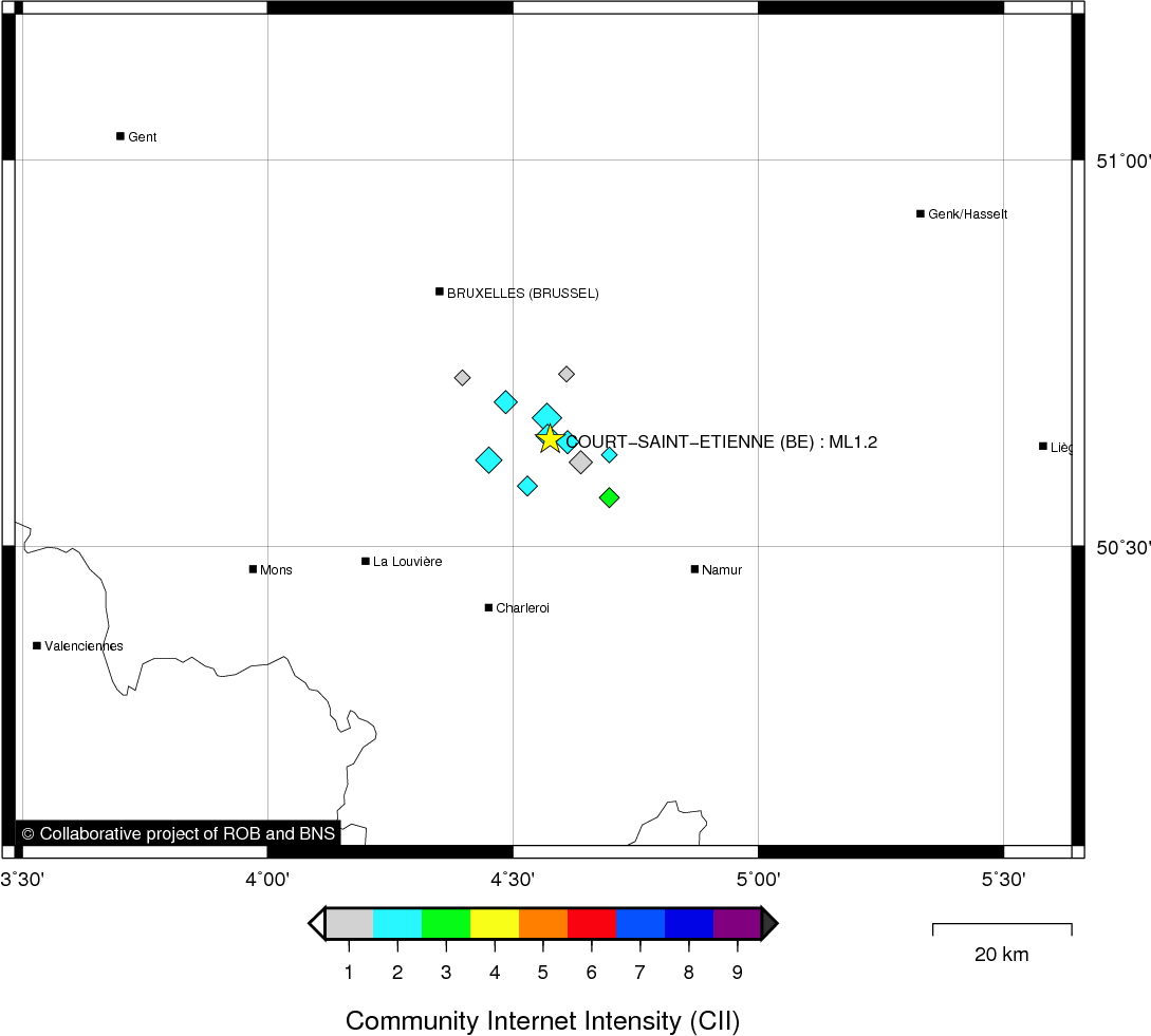 | Epicentral coordinates | 50.639° N, 4.576° E Uncertainty ± 0.7 km |