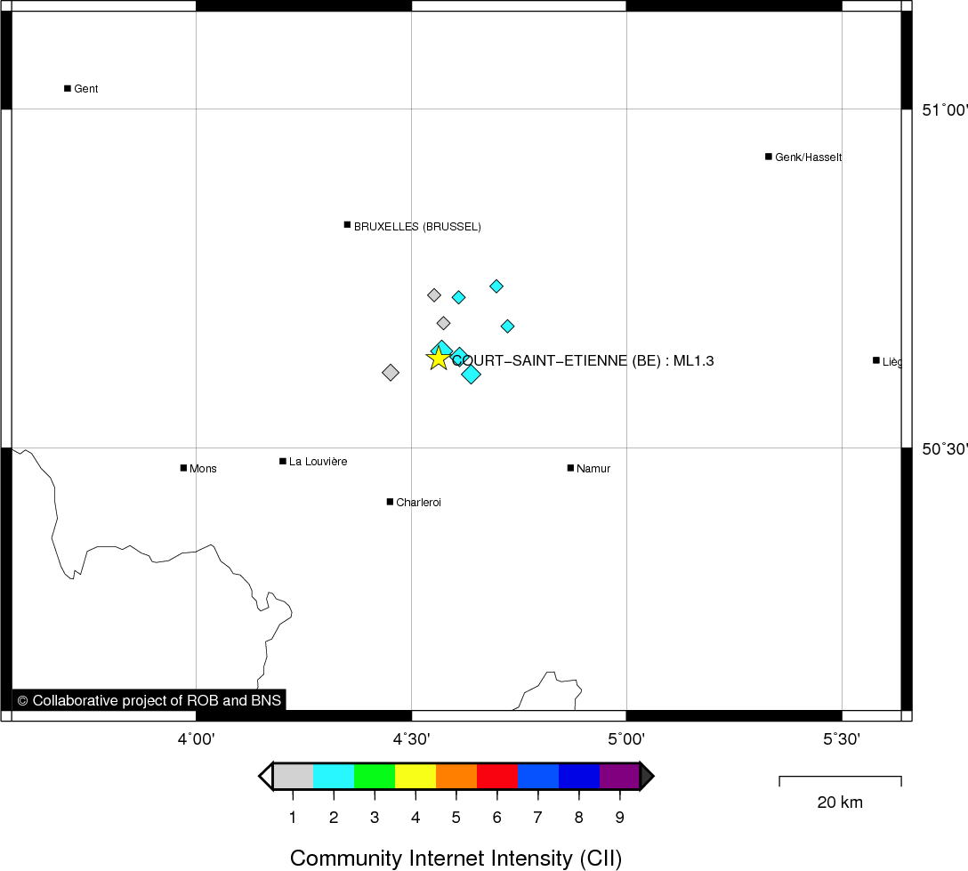 | Epicentral coordinates | 50.632° N, 4.563° E Uncertainty ± 0.6 km |
