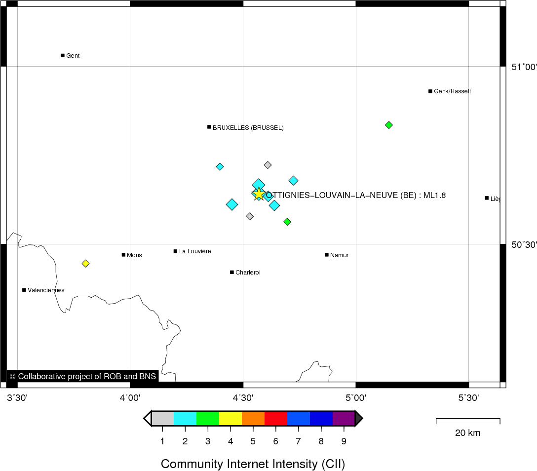 | Epicentral coordinates | 50.641° N, 4.570° E Uncertainty ± 1.3 km |