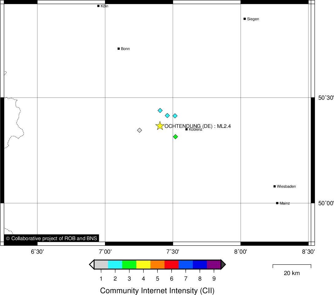 | Epicentral coordinates | 50.366° N, 7.405° E Uncertainty ± 1.2 km |