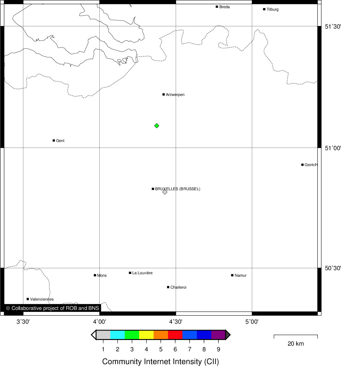 | Epicentral coordinates | 50.531° N, 5.888° E Uncertainty ± 0.5 km |