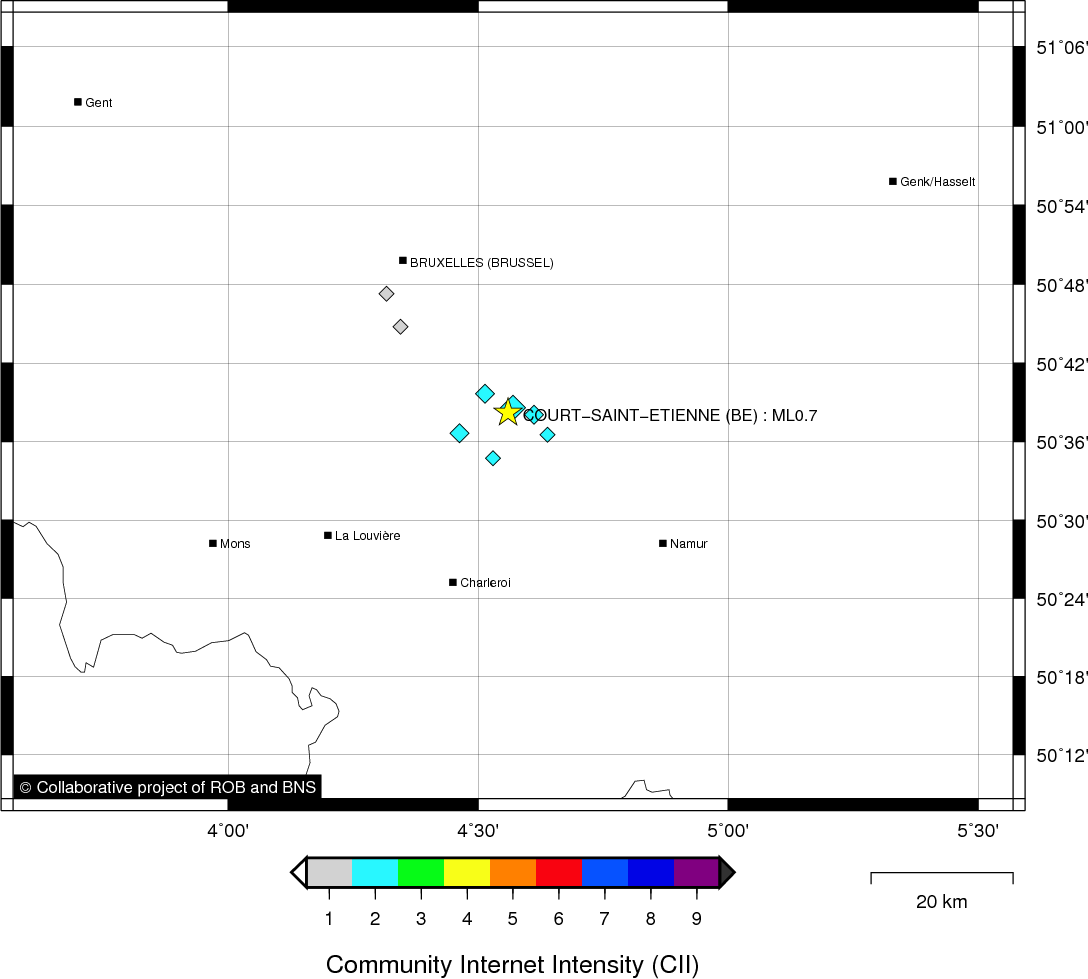 | Epicentral coordinates | 50.637° N, 4.560° E Uncertainty ± 0.7 km |