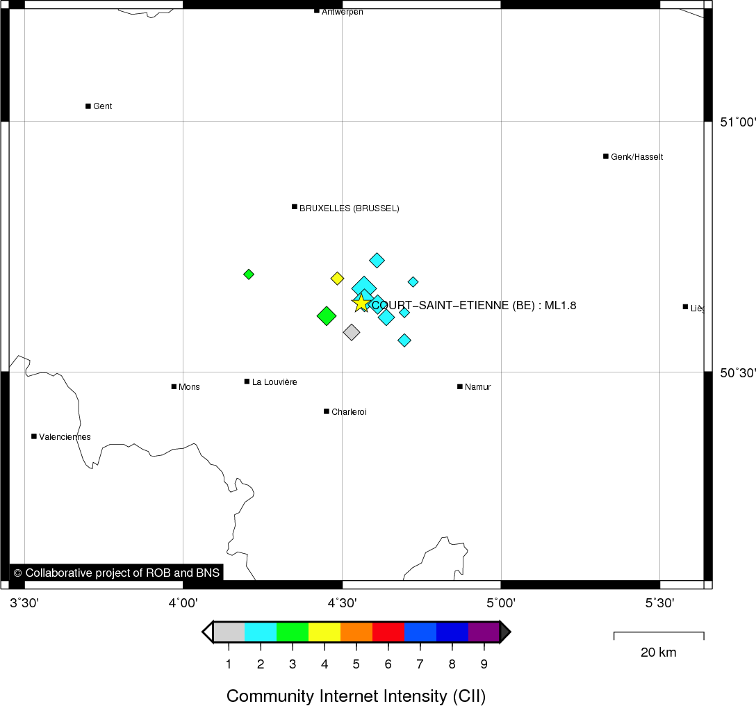 | Epicentral coordinates | 50.637° N, 4.560° E Uncertainty ± 0.6 km |