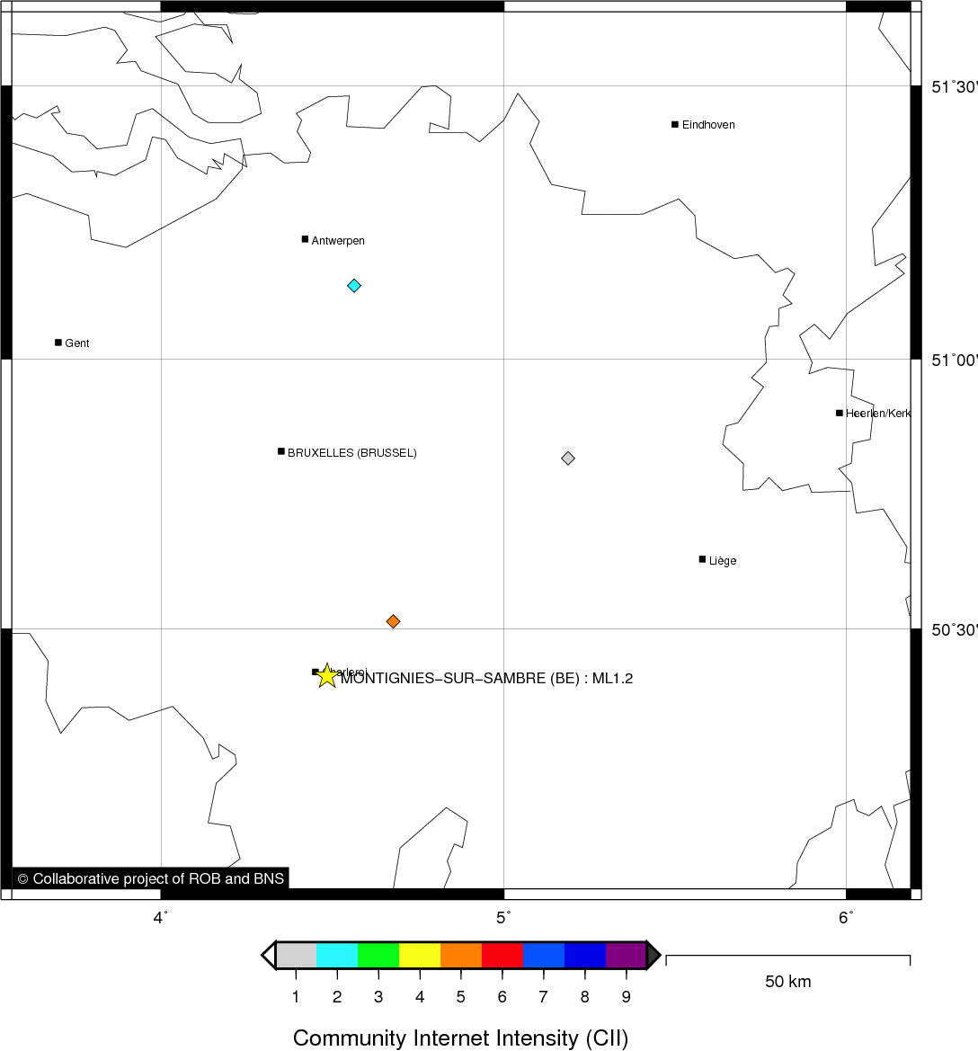 | Epicentral coordinates | 50.407° N, 4.494° E Uncertainty ± 0.8 km |