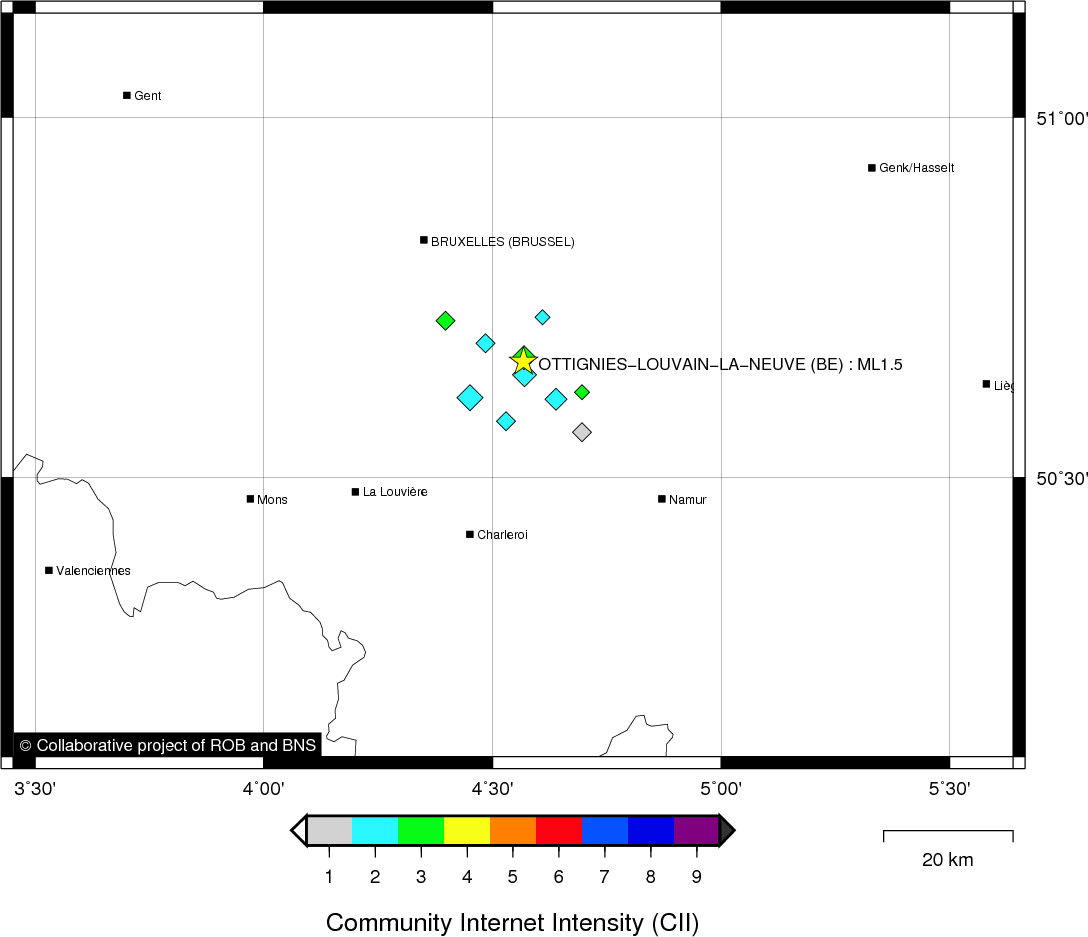 | Epicentral coordinates | 50.662° N, 4.569° E Uncertainty ± 1.1 km |
