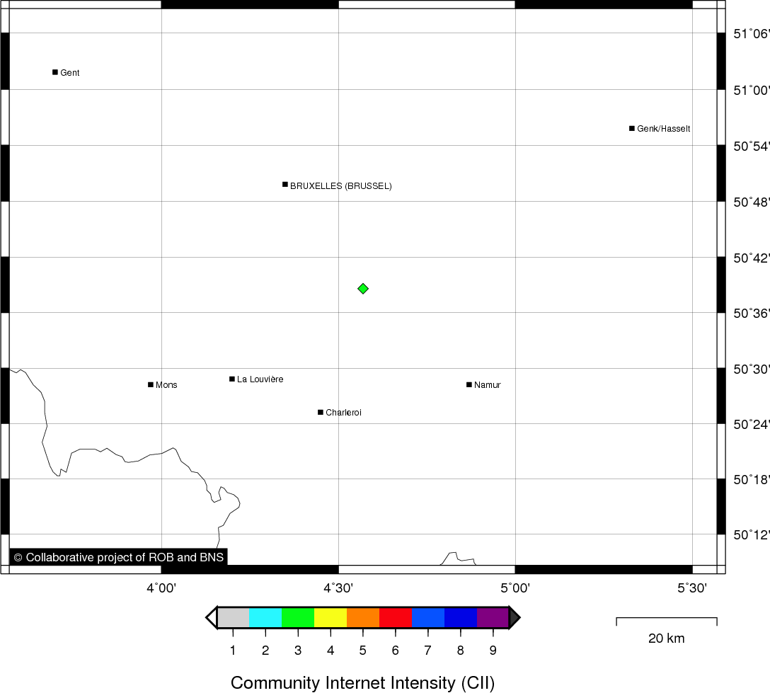 | Epicentral coordinates | 50.606° N, 5.712° E Uncertainty ± 4.2 km |