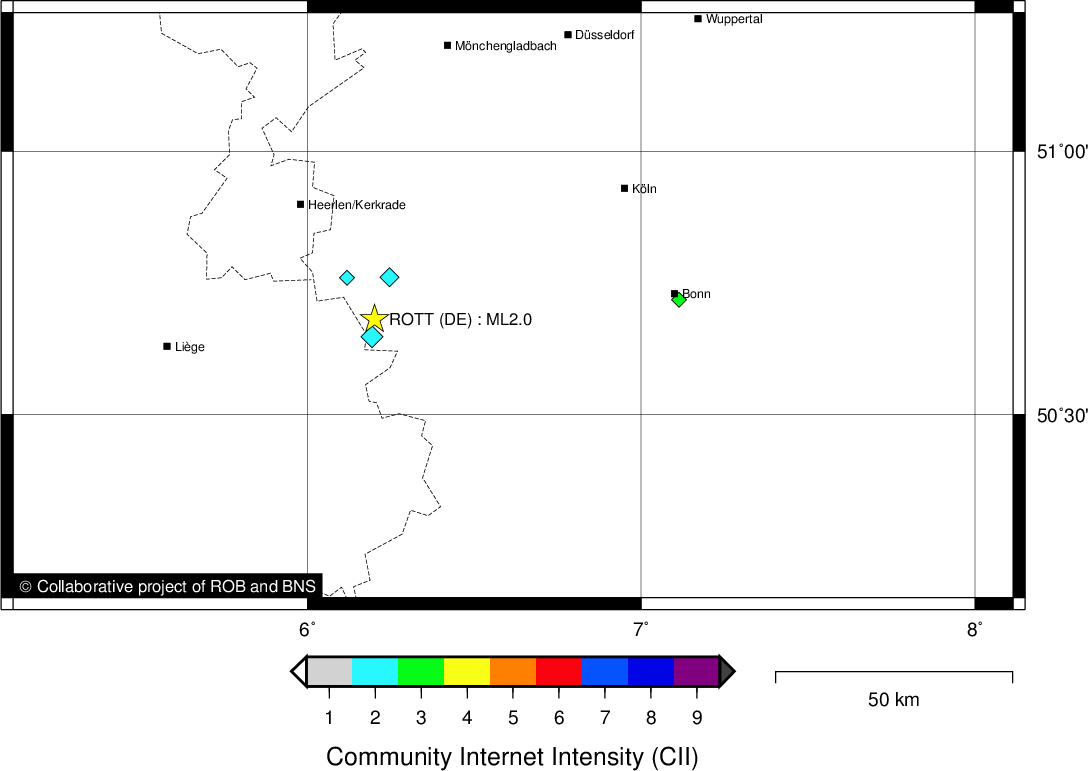 | Epicentral coordinates | 50.689° N, 6.226° E Uncertainty ± 0.3 km |