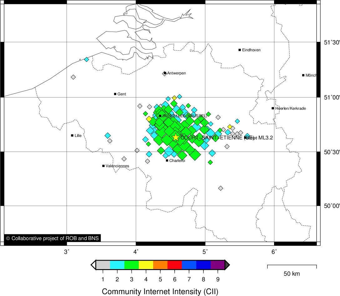 | Epicentral coordinates | 50.632° N, 4.577° E Uncertainty ± 0.6 km |