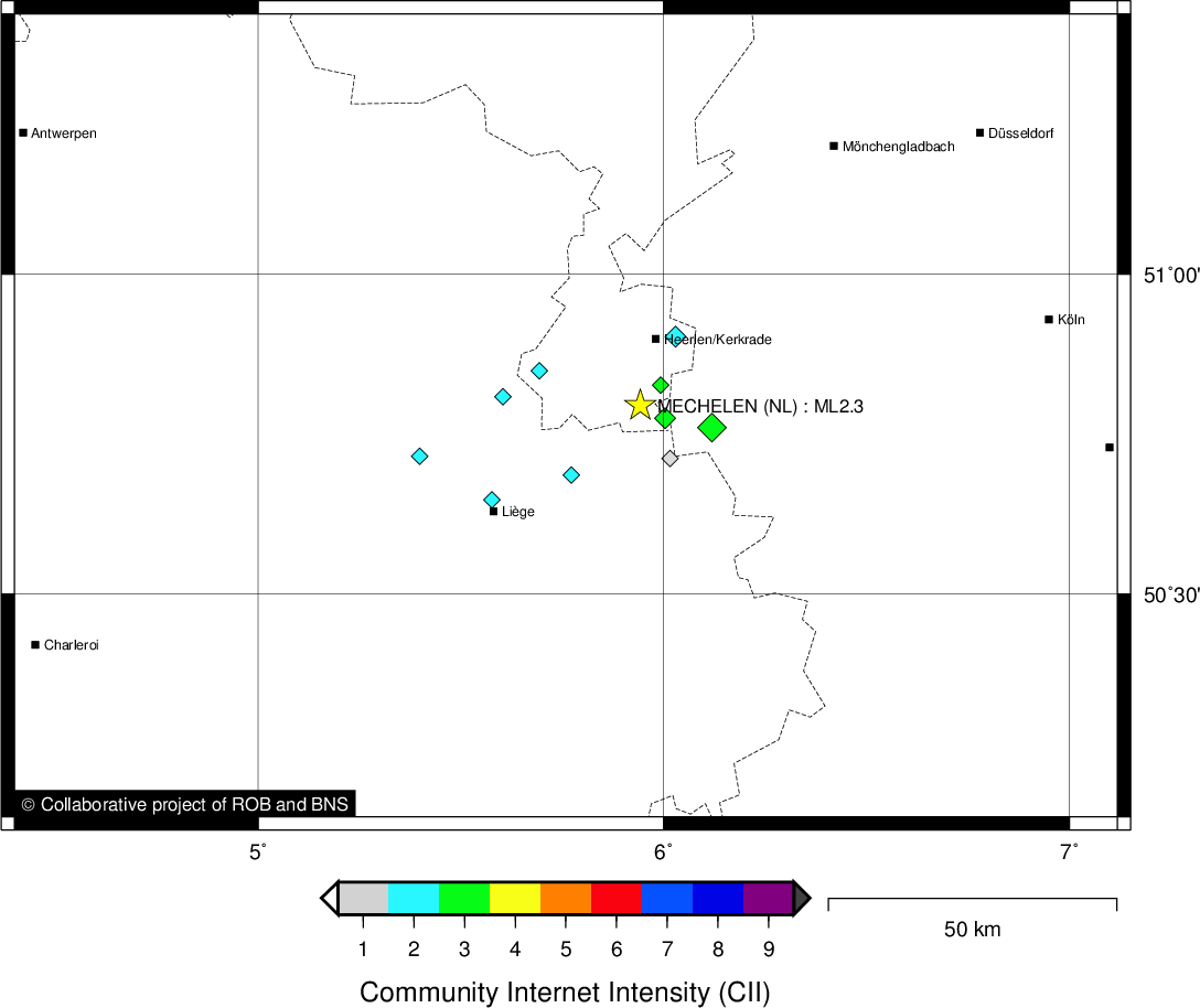 | Epicentral coordinates | 50.795° N, 5.943° E Uncertainty ± 0.7 km |