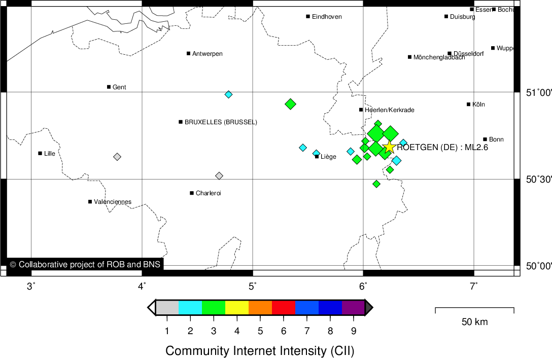 | Epicentral coordinates | 50.684° N, 6.236° E Uncertainty ± 0.5 km |