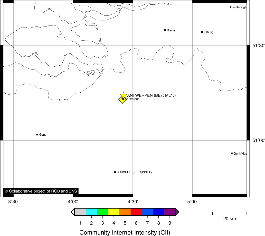 | Epicentral coordinates | 51.238° N, 4.423° E Uncertainty ± 5.5 km |