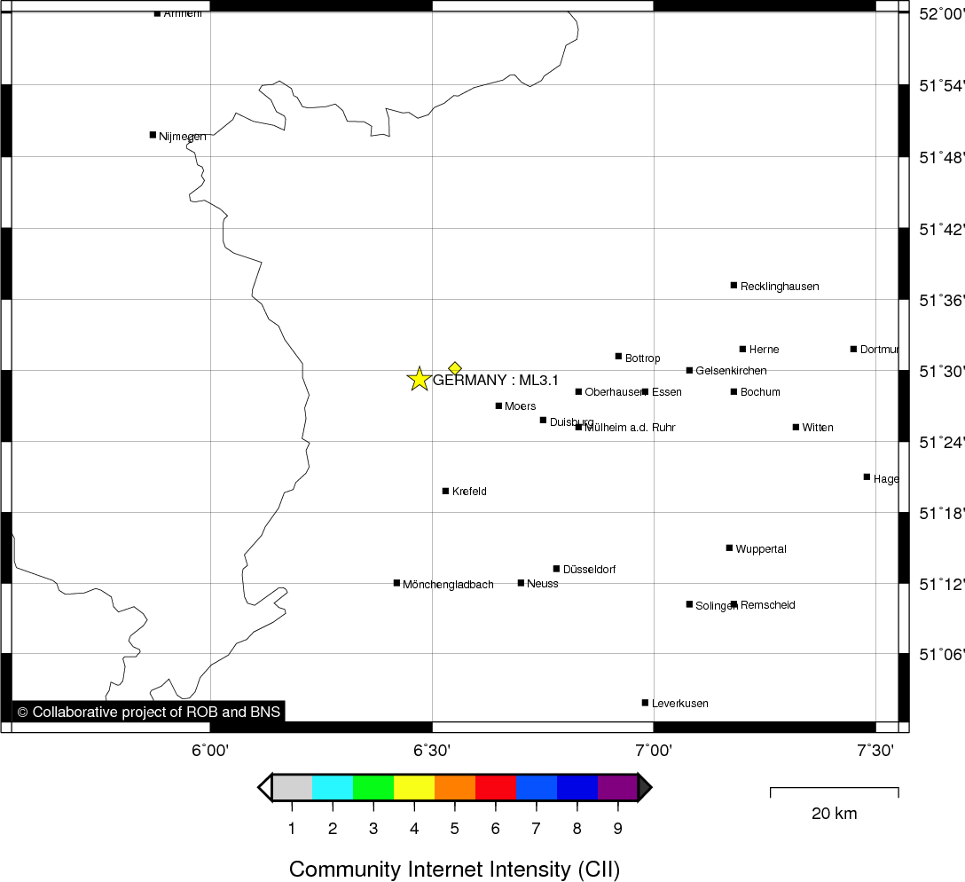 | Epicentral coordinates | 51.488° N, 6.472° E Uncertainty ± 8.1 km |