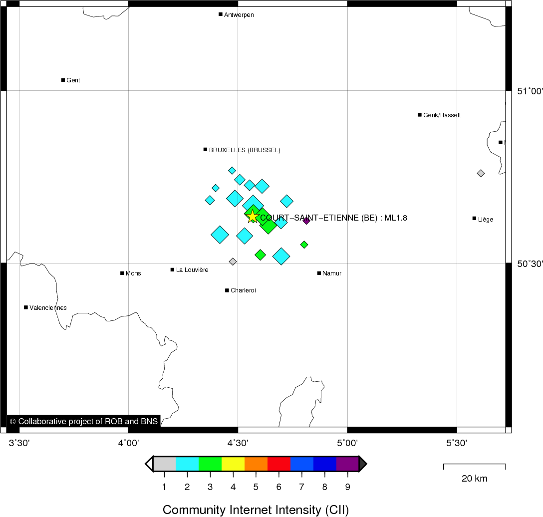 | Epicentral coordinates | 50.635° N, 4.567° E Uncertainty ± 0.6 km |