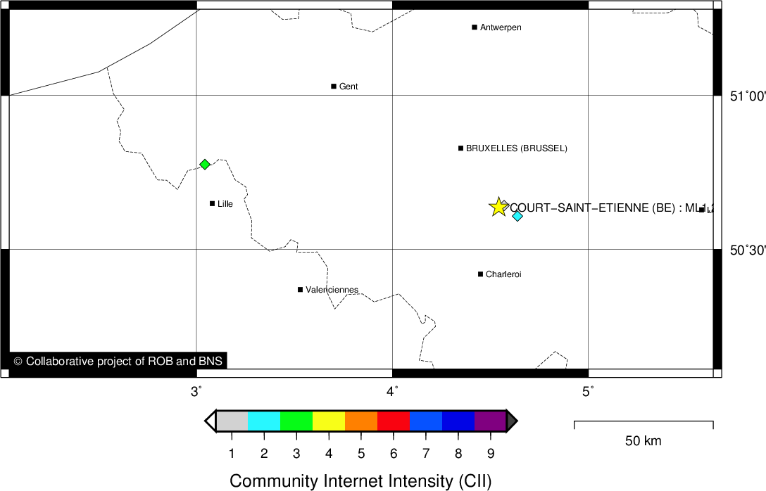 | Epicentral coordinates | 50.637° N, 4.541° E Uncertainty ± 0.6 km |