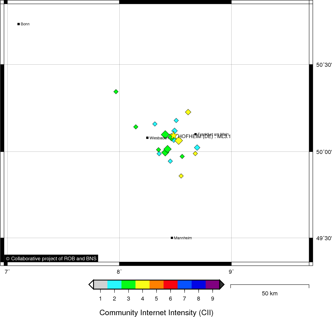 | Epicentral coordinates | 50.093° N, 8.485° E Uncertainty ± 2.4 km |