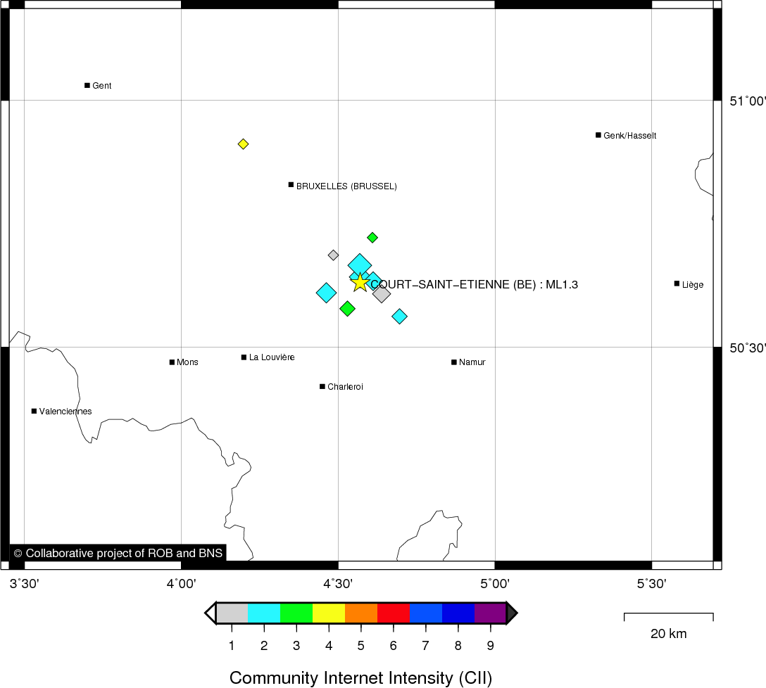 | Epicentral coordinates | 50.631° N, 4.570° E Uncertainty ± 0.6 km |