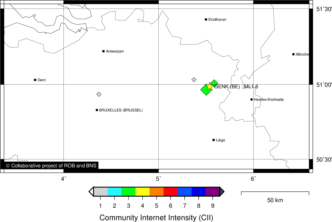 | Epicentral coordinates | 50.987° N, 5.539° E Uncertainty ± 0.6 km |