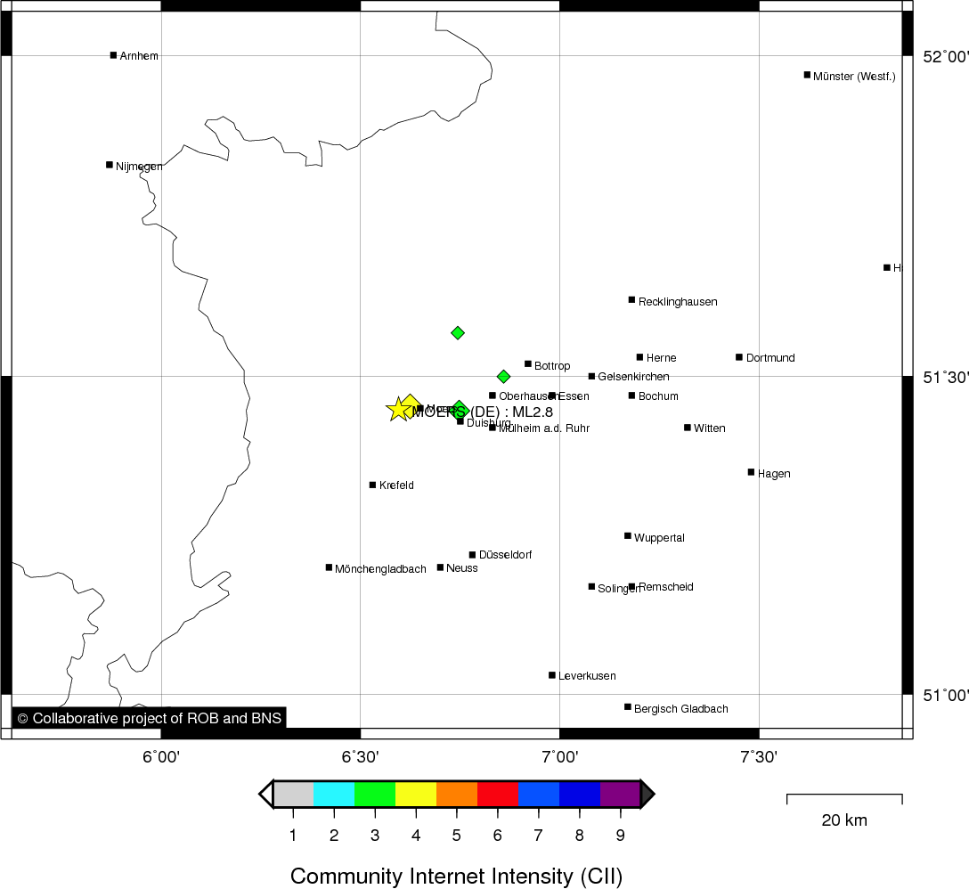 | Epicentral coordinates | 51.448° N, 6.596° E Uncertainty ± 1.0 km |
