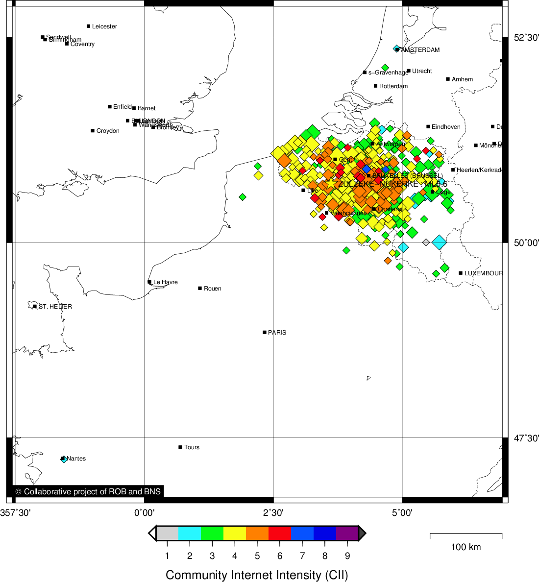 | Epicentral coordinates | 50.733° N, 3.617° E Uncertainty ± 3.4 km |