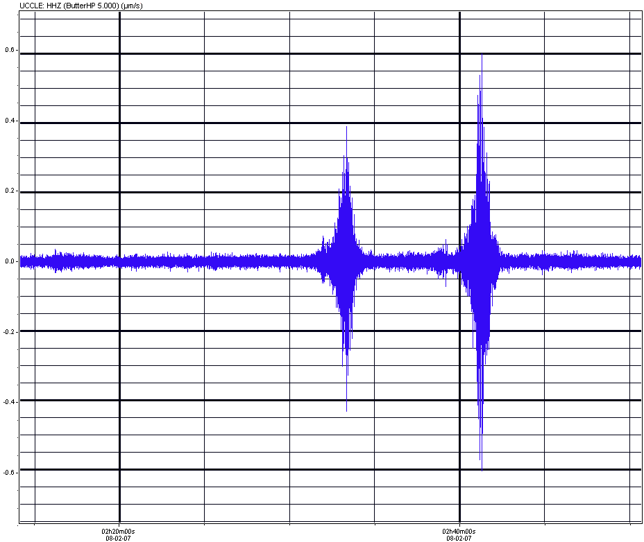 Seismogram 2. Same time series as above, after 5 Hz