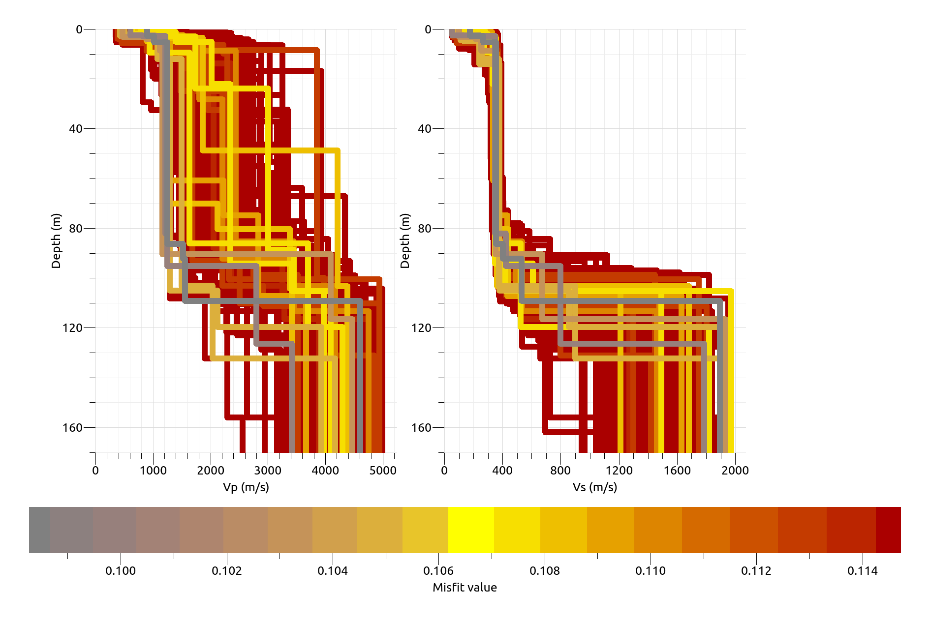 The final velocity models (see figure 3) represent the layered structure underneath a station/ an array, where each layer consists of a different geological unit with unique corresponding seismic velocities. As the passive methods used for the estimation of models have non-unique solutions, the velocity structures and values possess a range of uncertainty (see the width of different values per layer in figure 3). Therefore, the final solution is just the most likely solution and image of the subsurface structure we can extract. Average values of certain parameters of interest for engineering purposes (e.g., vS30, f0) are further estimated and communicated to the central storage of the EPOS project called ORFEUS station book. In here, meta-information of all publicly available seismic stations in Europe are stored in this centralized platform, giving a unified overview of all necessary base information to the global seismological community.