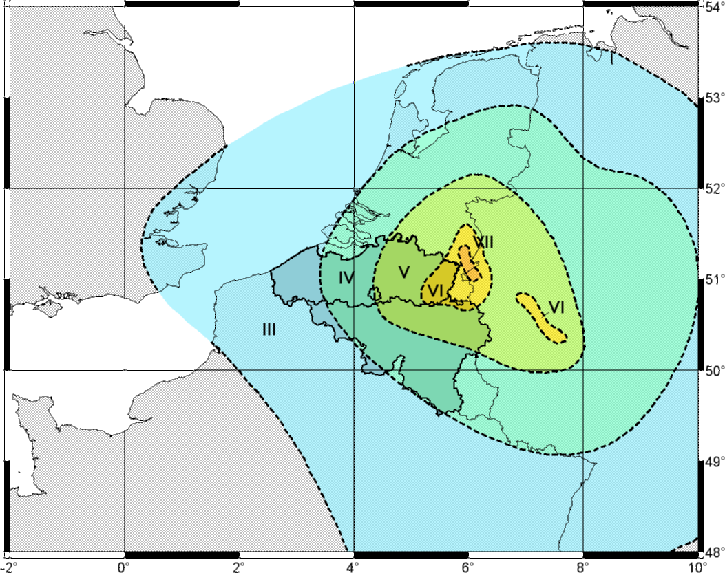 Sedert 1932 voert de KSB na elke aardbeving die in België gevoeld wordt, een enquête uit naar de effecten ervan in België. Aan de hand van de gerapporteerde gewaarwordingen en de eventuele schade kan dan een zogenaamde macroseismische kaart opgesteld worden die de verdeling van de intensiteit van de aardbeving weergeeft. Op dergelijke kaart worden zones van gelijke intensiteit afgebakend door zogenaamde isoseisten. Hoewel deze methode grotendeels ontwikkeld werd vóór de ontwikkeling van de seismograaf, vormen macroseismische kaarten een welkome aanvulling op de metingen door seismografen. Ze geven een goed beeld van de complexe verdeling van de grondbewegingen en de aard van de aangerichte schade, ook op plaatsen waar geen meetinstrumenten zijn opgesteld. Deze kaarten spelen ook een rol bij het bepalen van de bouwcodes in ons land.